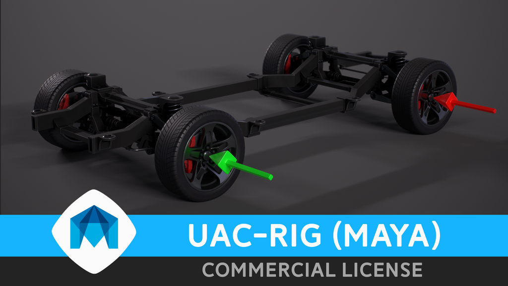 | Ultimate Adjustable Car Rig - FullThe Ultimate Adjustable Car Rig is a professional grade, production ready vehicle tool for Autodesk Maya. As well as its unique resizing capability, it boasts a fantastic built in path system, light weight dynamic suspension, in depth steering geometry tuning, tire pressure interaction and a full working chassis model. Users are easily able to resize this rig to fully connect to any 1-10 wheeled 3D model in a matter of minutes to achieve stellar animation results without any headaches. Perpetual Commercial License granted on purchase for a studio |